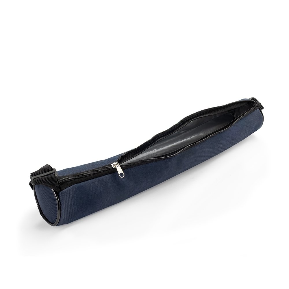 Bolsa térmica porta-latas confeccionada em poliéster resistente à água com capacidade para até quatro latas de 350ml. Possui revestimento térmico interno em PVC prateado com acabamento em verniz, que mantém a temperatura das latas por mais tempo. Conta ainda com alça transversal ajustável.