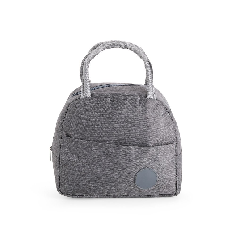 Bolsa térmica o confeccionada em poliéster impermeável e capacidade de até 5 litros. Apresenta revestimento interno em folha de alumínio, o que oferece mais tempo de conservação de temperatura para alimentos e bebidas. Conta também com bolso frontal com plaquinha fixa em plástico e par de alças em nylon para transporte.