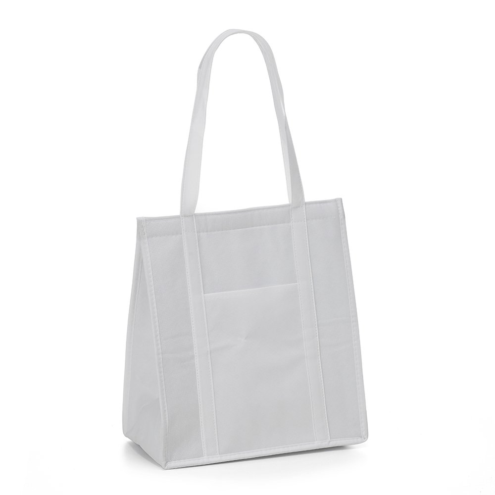 Sacola térmica com capacidade de 18 litros, contém fechamento em velcro e bolso frontal. Obs.: A capacidade de armazenamento com a sacola fechada é de aproximadamente 14 litros.