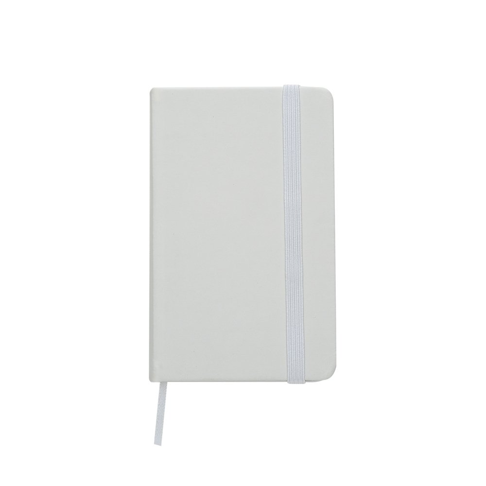 Caderneta emborrachada com elástico para lacre e marcador de página em cetim.