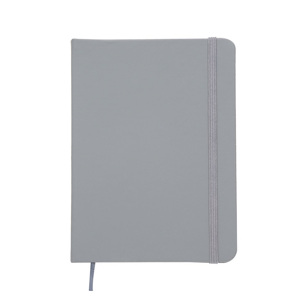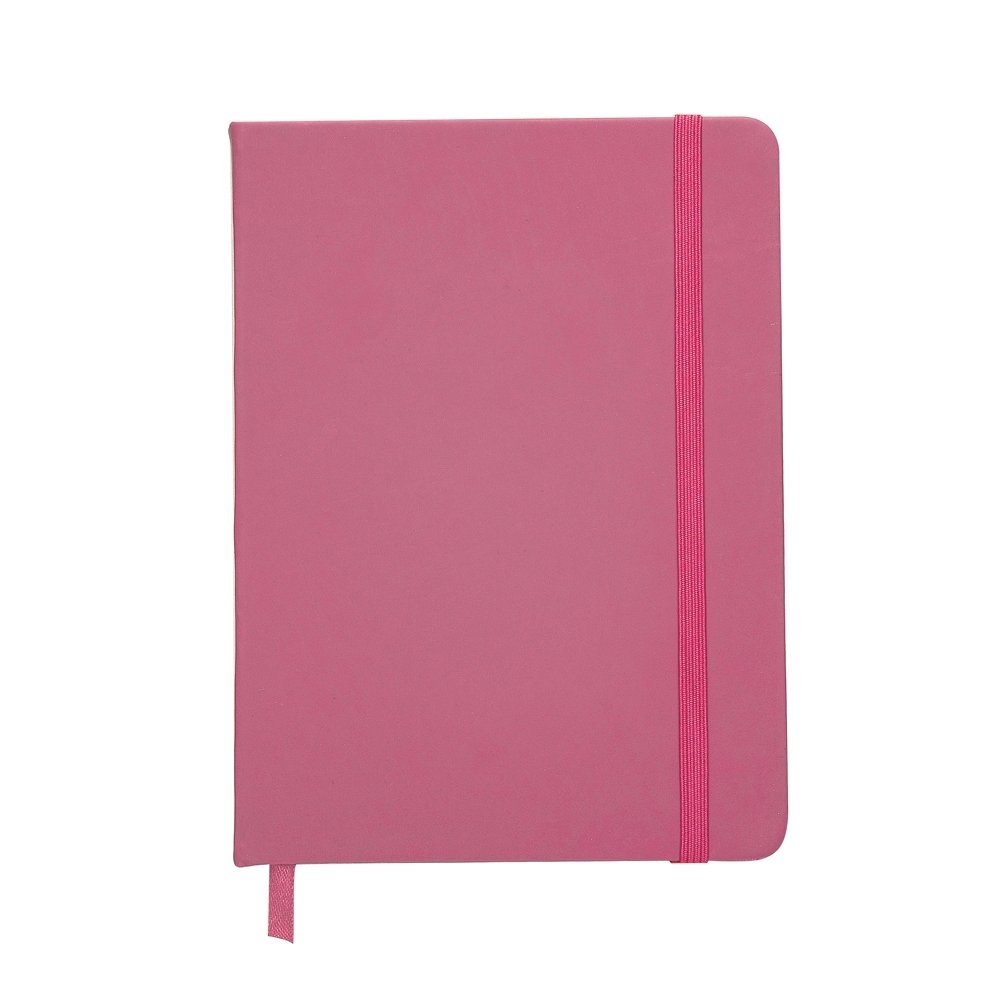 Caderneta emborrachada com pauta, elástico para lacre e marcador de página em cetim.