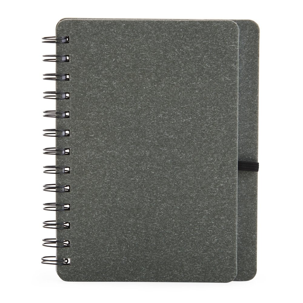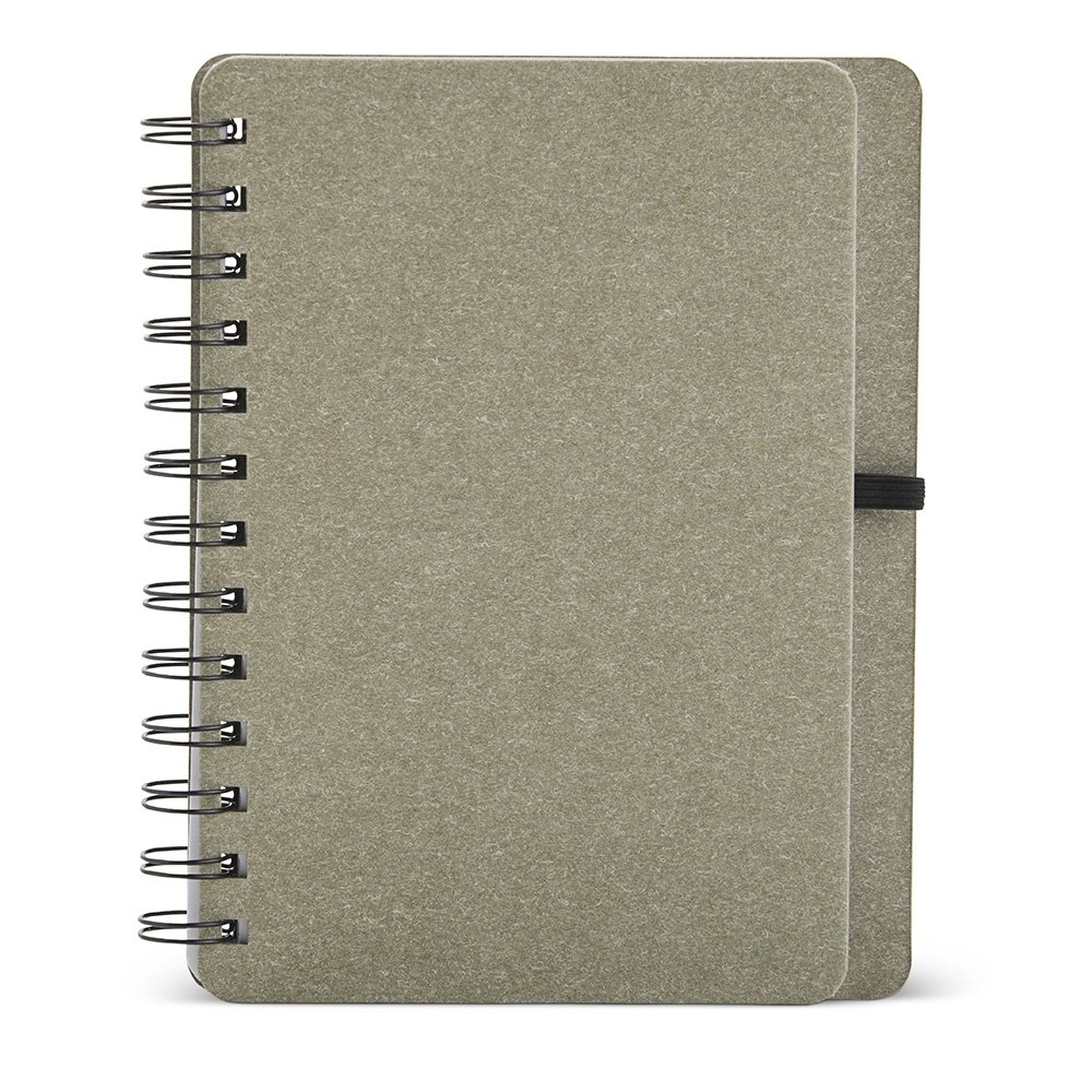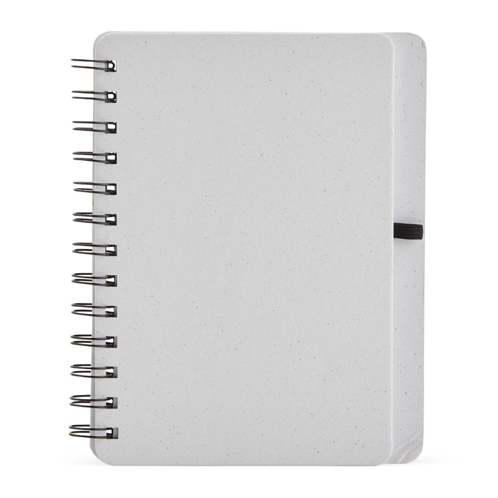 Caderno B6 capa dura em kraft com wire-o e porta caneta. Contém aproximadamente 70 páginas pautadas na cor branca.