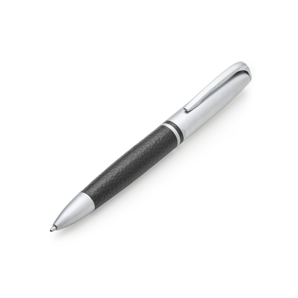 Caneta de metal com detalhe em couro, personalizada com gravação a laser ou em silk
