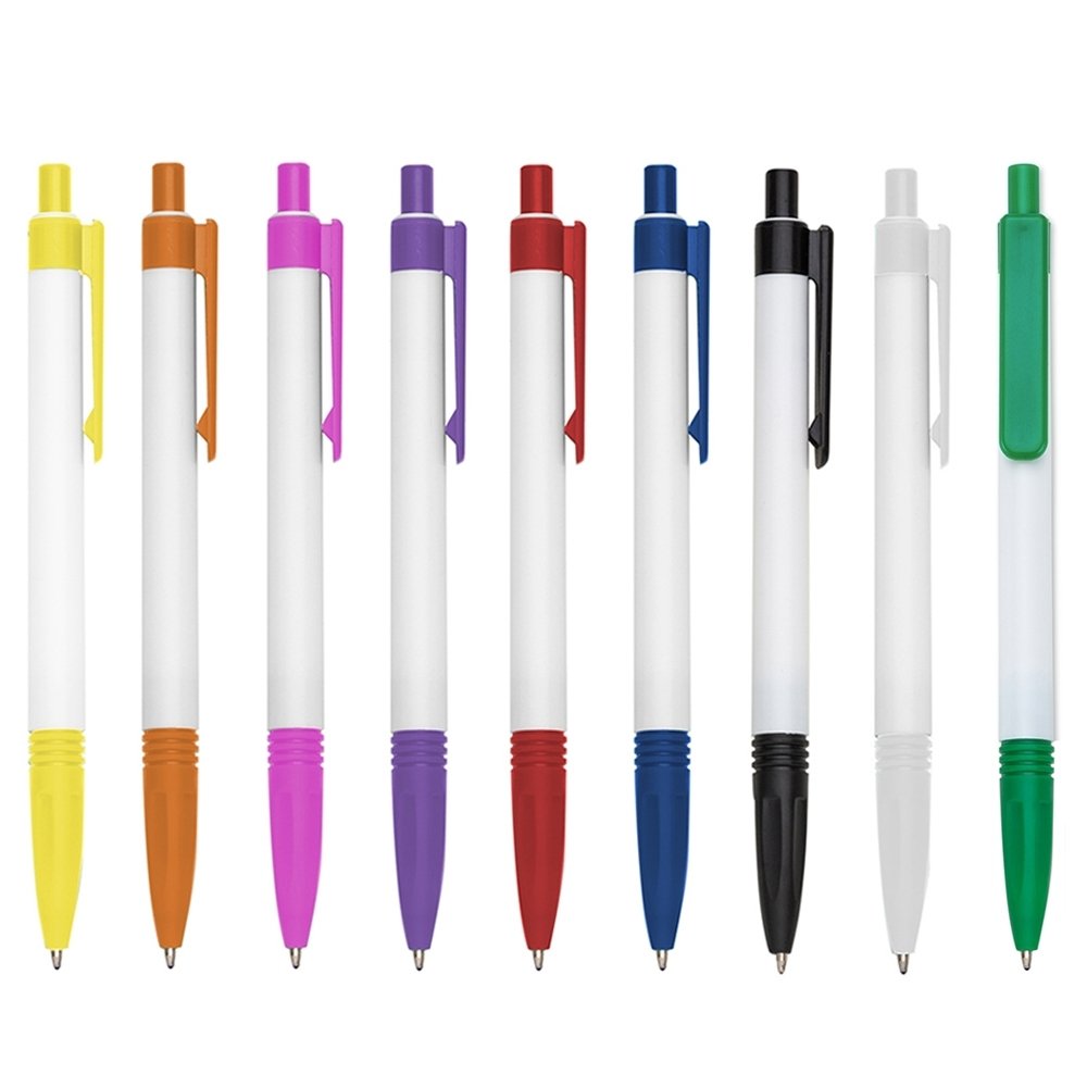 Caneta plástica personalizada com gravação em Silk ou UV Digital Colorida