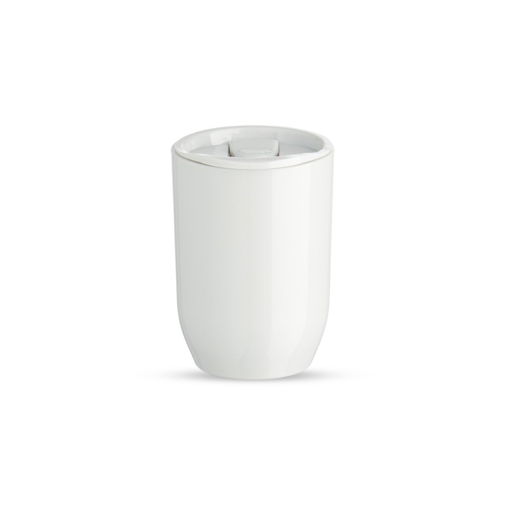 Copo plástico 350ml com tampa de pressão. Tampa com acesso e trava de segurança para o bocal.