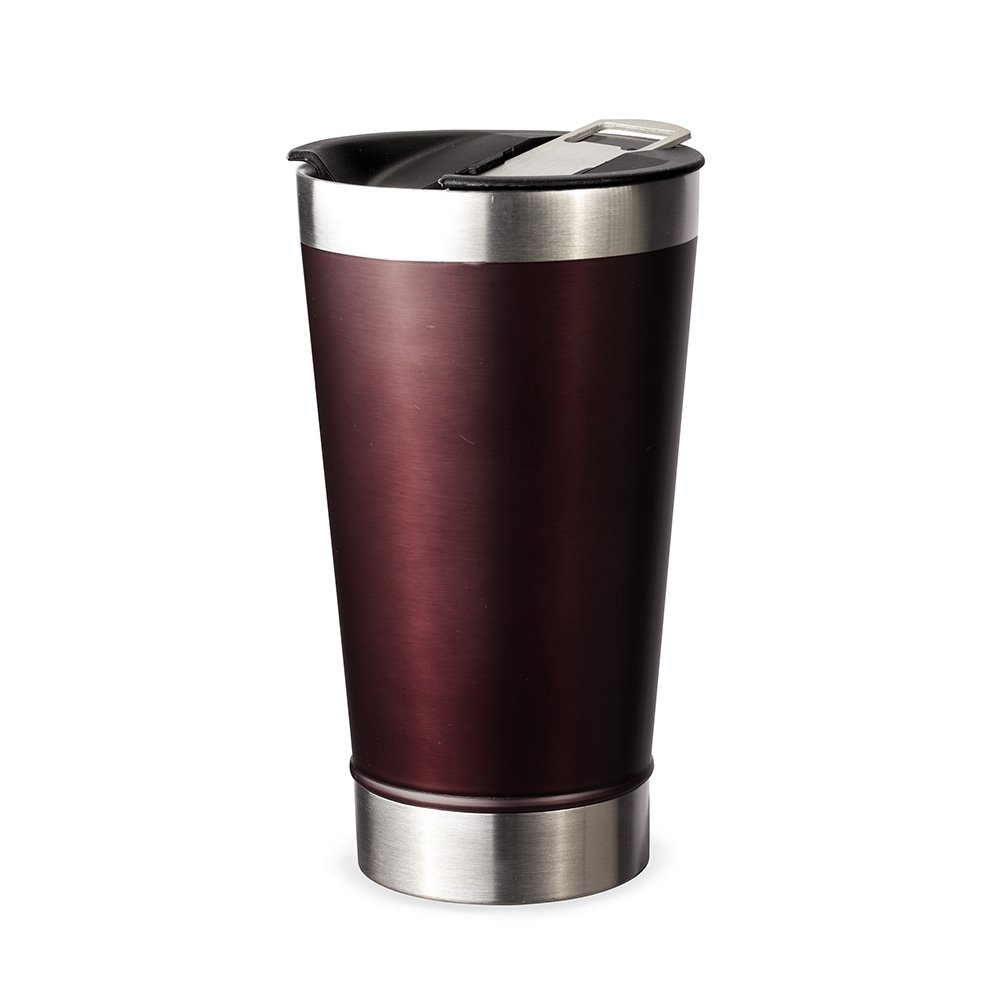 Copo térmico de inox com acabamento liso e capacidade 500ml, material livre de BPA. Contém tampa com abridor.