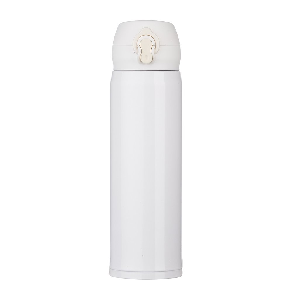 Garrafa térmica de 400ml de inox colorida com botão e válvula para abertura. Possui um sistema de trava (basta mover para cima/baixo para abrir/fechar), pressione o botão central para abrir a tampa(possui na parte interna borracha protetora evitando vazar o líquido). Para abrir a tampa por completo basta rosqueá-la, parte interna revestida em inox. Na embalagem do produto pode ir especificado a capacidade de 450ml ou 500ml devido aos fabricantes que trabalham terem impresso a descrição deste modo, porém ressalvamos a capacidade correta de 400ml.