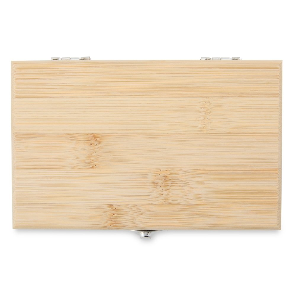 O kit vinho com 3 peças com estojo de bambu é a escolha perfeita para quem busca elegância e funcionalidade. Acompanha um saca-rolhas metálico com acabamento em bambu, que possui lâmina de corte e abridor de garrafa, uma tampa de bico com detalhe em bambu e silicone, e um wine collar. A caixa de bambu tem um design sofisticado e rústico, e contém ainda um berço de espuma interno, garantindo a proteção dos itens.