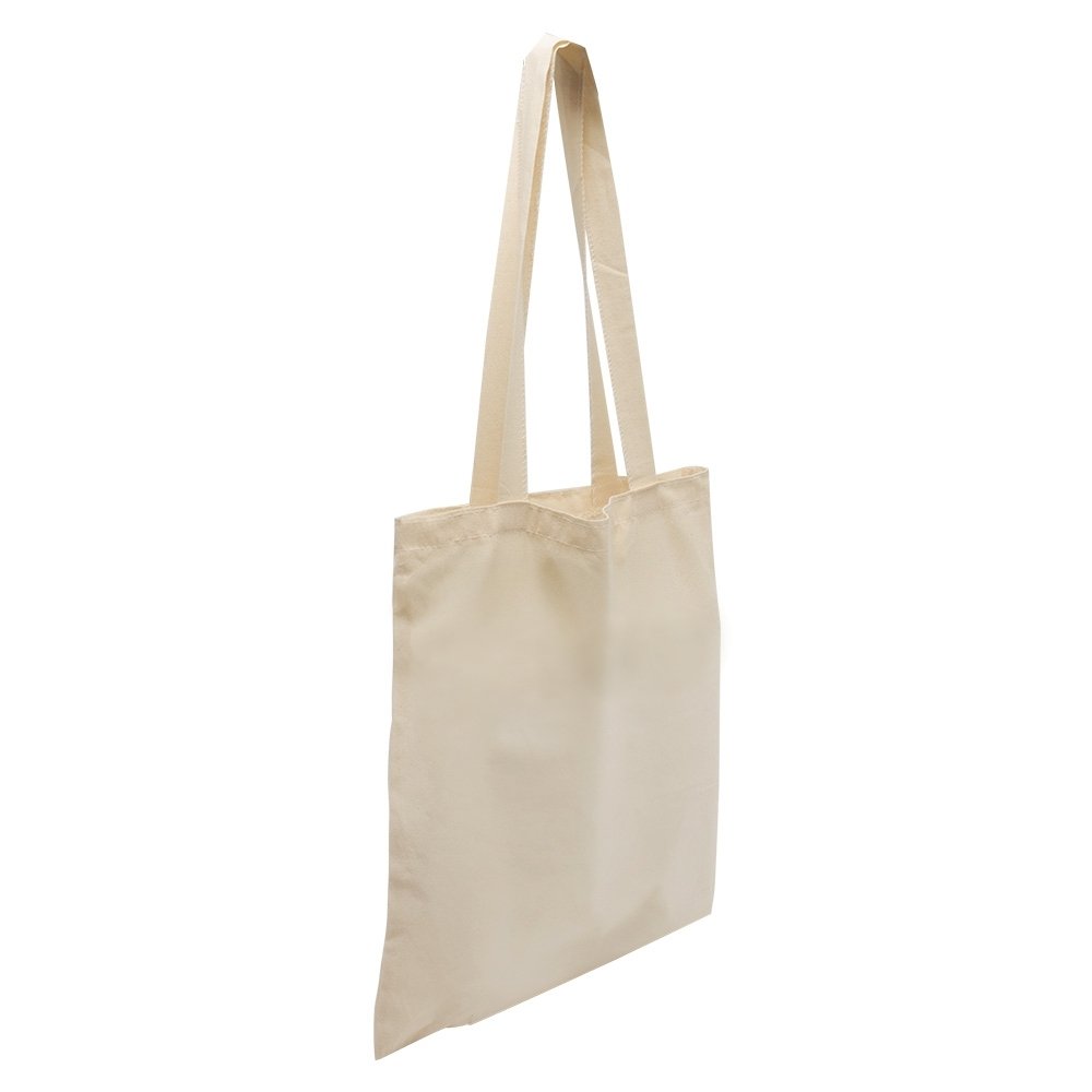 Sacola de algodão 210g/m² com 16 fios e alças costuradas na parte interna.