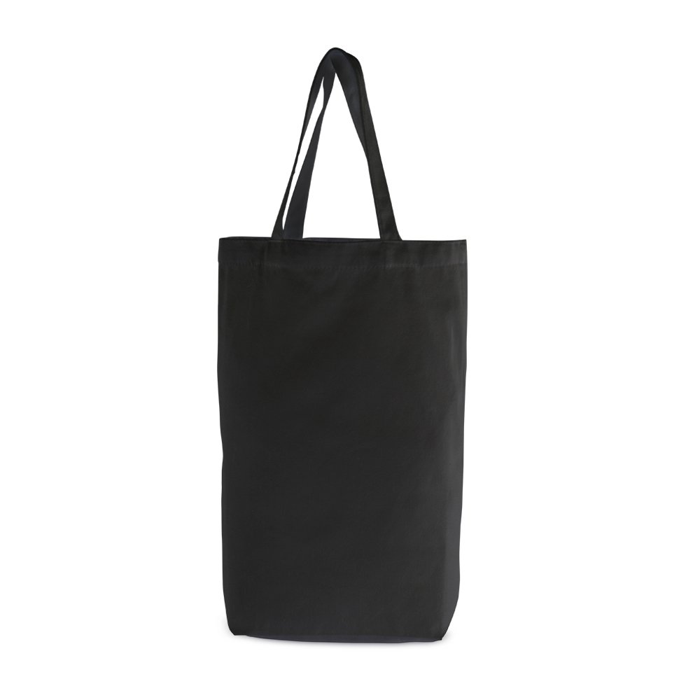 Sacola feita em algodão 280g/m² com duas alças costuradas na parte interna.