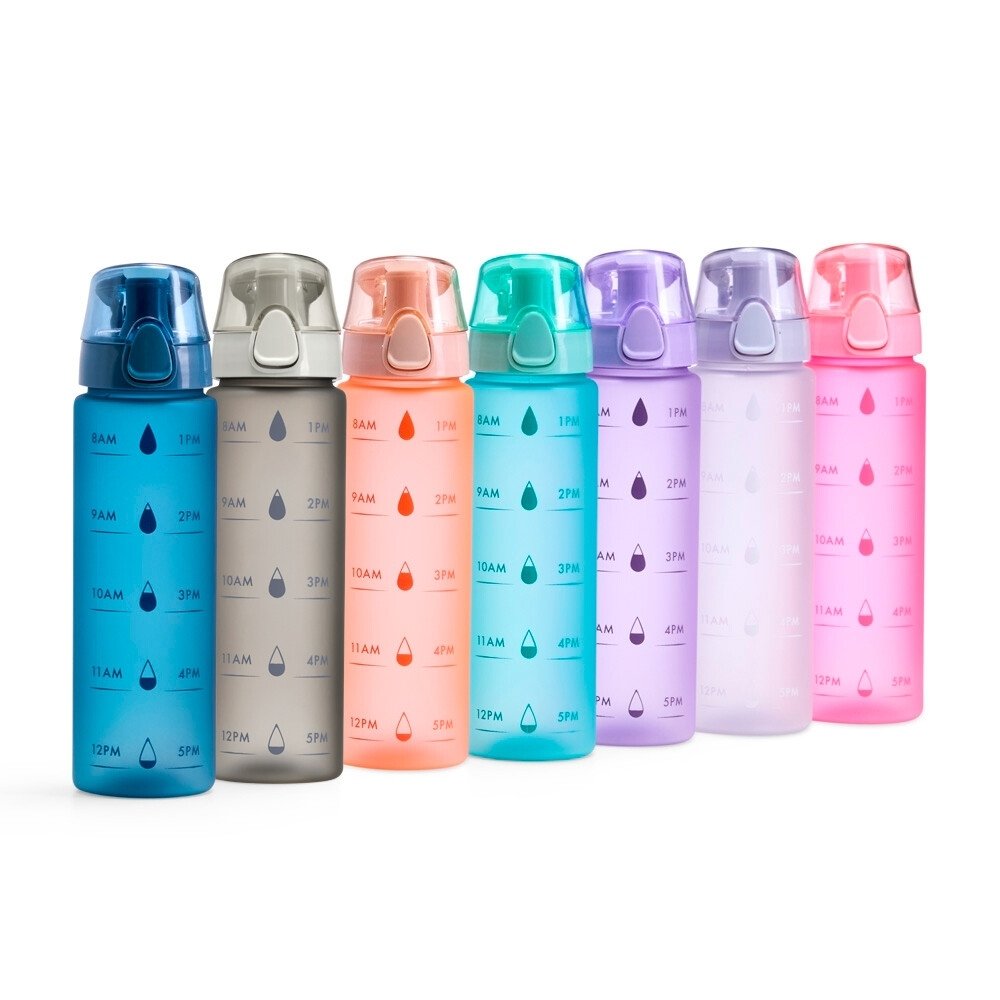 Mantenha-se hidratado com o nosso squeeze ideal para o dia a dia. Feito de plástico resistente, ele combina praticidade e funcionalidade com um design inteligente. Possui tampa com bocal e botão de acionamento para facilitar o uso, alça para transporte que garante praticidade onde quer que você vá, e um marcador de horário que ajuda a lembrar de se hidratar ao longo do dia, além de motivar quem tem dificuldade em manter uma rotina de consumo de água.